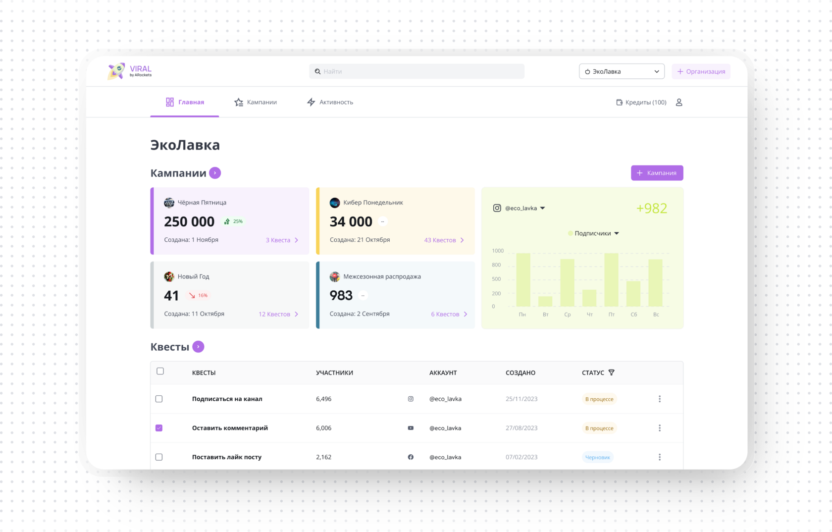 Viral преобразует традиционные кампании цифрового маркетинга в интерактивные квесты, которые размещаются на социальных и видео платформах. Это позволяет пользователям активно участвовать в маркетинговых акциях, а не просто наблюдать за ними, что значительно увеличивает их вовлеченность и интерес.